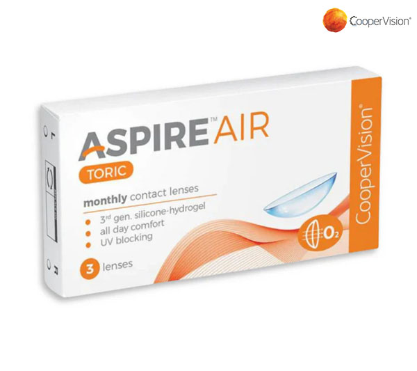 If you wear contact lenses for astigmatism and want the most for your money, choose CooperVision Aspire AIR toric contact lenses for excellent performance at a surprisingly affordable price They’re made from an advanced silicone hydrogel material specially developed for long-lasting comfort, easy handling and a healthy lens-wearing experience. Brought to you by CooperVision, a world leader in toric contact lenses, Aspire AIR toric contact lenses have the same trusted optical design features as our premium Aspire PRO toric contact lenses to help provide you with crisp, clear vision. They’re a smart choice for savvy contact lens wearers like you.