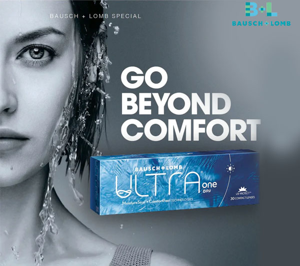Available in 5 Lens Pack / 30 Lens Pack For those at the top of their game, compromising is never an option, they always want the best. Introducing Bausch+Lomb UltraTM ONE DAY, one of our best lens ever. They come with Advanced MoistureSealTM Technology1 that helps retain 96% of its moisture for long lasting wear2, coupled with ComfortFeel Technology1. It takes user beyond comfort and allows them to live the ultra-life.
